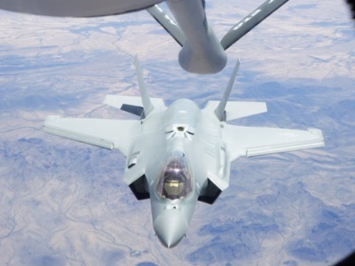 The U.S. Air Force Entertainment Liaison Office recently invited a group of industry professionals to March Air Reserve Base on a USAF Orientation Tour aboard a Boeing KC-135 Stratotanker of the 452d Air Mobility Wing, 336th Air Refueling Squadron to witness the in-flight refueling of F-16 Falcons, F-35 Lightnings, and A-10 Thunderbolts jets.